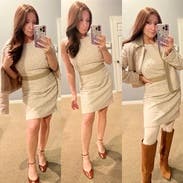 this tweet jacket is perfect to wear during the day to give any pair of jeans an elevated classy look. It was perfect for a fall festival at the beach. It was warm enough that I didn’t need another jacket over it and the color combination gives it a lot of versatility to wear with the most the FAUX leather collar and detailing down the center give this jacket something extra. I also carried the boss tote with it, which matched perfectly. One warning size down if you want more fitted look. I got a size 4 and had plenty of room. I am usually a size 6 in blazers and jackets.