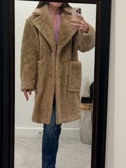 The BOSS Sherpa Teddy Coat is an ultra-cozy outerwear piece crafted in soft sherpa fabric, offering luxurious warmth and a relaxed, snug fit. Layer this warm coat over fitted black separates and combat boots for an effortless, elevated cold-weather look.