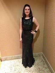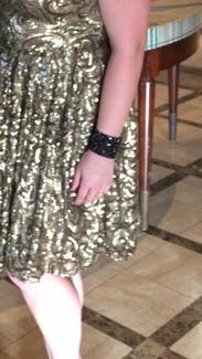 This black cuff was a great accessory to my BM Take the Stage Gown! The sparkle was what I was looking for, and because it's a cuff, it was easily adjusted to fit my small wrist comfortably.
