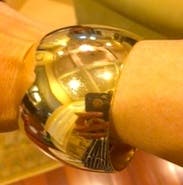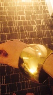 I absolutely loved this bangle! I love gold accents for jewelry, so I knew this would complete my outfit when I saw it. Unfortunately, I have little, dainty wrists, and I was surprised when the bangle completely fell off of my wrist without me noticing. I put it back on, but I had to be conscious of it for the rest of the night. It's not too heavy or bulky, so I recommend it. Perhaps for me, I would try something a little different that would better fit my smaller wrists.