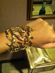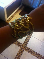 I rented this piece because it reminded me of coral! Super cute cuff to rock! I went to Eva Longoria's birthday party and I got compliments on my Kate Spade dress I rented as well as the cuff and earrings I wore! The only thing that I didn't like was that it was heavy and sort of bruised my wrist bones from dancing all night. Other than that I loved it!!