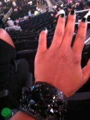 I love the look of this bracelet but because of the weight of the jewels it spun around my wrist and as the night wore on I took it off. Great for the photo opp!