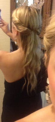 I wore this too my best friends weddings to match her hair style half up half down curly hair with this headband and it was beautiful. I wish I didn't have to return it haha