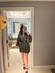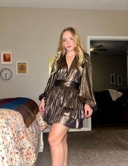 I wore this for a NYE event and it was perfect! The body of the dress fit like a glove. The V was a little low for my comfort level but I just used fashion tape to fix it and the sleeve were a bit bigger than expected is all. Overall was in love with this dress!!