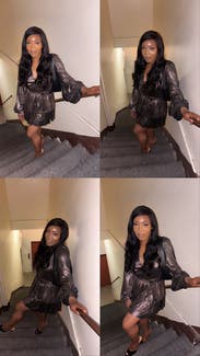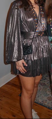 I loved this B&B dress, and received a ton of compliments. Their dresses run either too large or too small for me and in this case it definitely ran large but I wore it anyways. I will definitely rent again and size down, I felt like a disco ball and enjoyed the puffy sleeves and skirt.