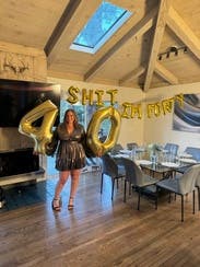 I wore this dress for my 40th birthday dinner and it was perfect. I got the XL and XXL - I tried the XXL on first and it fit with quite a bit of stretch to it, so I didn’t even bother trying on the XL. The color and flair of the dress was so fun, my friends loved it. The only thing I wish I had done differently was worn a different bra. The way the dress hangs it made my boobs look even bigger so I wish I’d had worn a bra that kept the girls a bit smaller and higher. Either way, I’ll definitely rent this again for a fun party or night in Vegas!