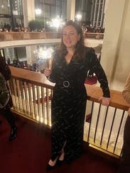 I thought it would be fun to wear a dress with shoulder pads, but they kept shifting and felt awkward. The slit in this dress also needs to be pinned, as it goes all the way up to the waistline. This was the only dress I’ve ever worn to a gala that I didn’t get compliments on.