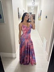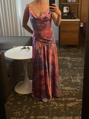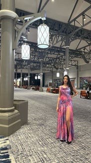 This dress was so fun! It was a perfect fit and comfortable throughout the evening. I got so many compliments too. The pink and purple are brighter than I anticipated but it gave Barbie vibes which I leaned into :)