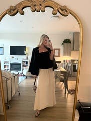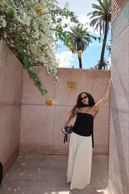 This dress is an absolute gem! The strapless black top paired with the flowing cream skirt creates such a timeless, elegant silhouette. It’s both comfortable and flattering—perfect for a growing bump or any body shape. The fabric drapes beautifully and moves with ease, making it a go-to for everything from dinners out to special occasions. A chic, effortless piece that makes you feel radiant the moment you put it on!