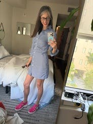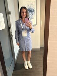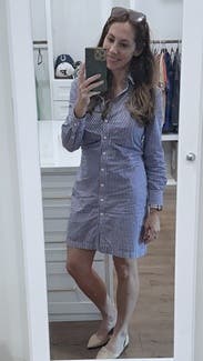 I have to size up in Callas but I really liked this shirt dress for work. It was cute, easy and flattering. Looked good with heels or sneakers.
