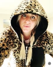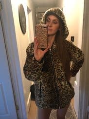 Plush leopard print in a hoodie jacket was fun to wear. I liked the front zipper pocket on the chest, it was handy. The jacket is warm and roomy, it was the most comfy!