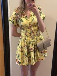 This dress is so cute and I raked in the compliments when I wore it. I’m returning it after 2 wears only because it absolutely does not cover my booty cheeks when sitting down. But if you’re standing the majority of the time you’re wearing it, it’s perfection.