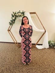 This was a very fun dress! It’s a little tight to walk in since there isn’t a slit. Form fitting, if concerned about being tight I’d size up.