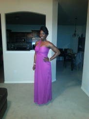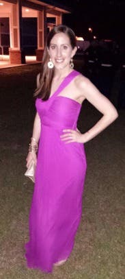 I loved this dress! The color is absolutely stunning and is unique depending on the light it's in. Regardless, it's vivid, and will certainly catch people's eye. The dress is light and breezy, ideal for a spring or summer party/event. The bodice is tight, but I didn't have any problems. I wore a nubra with this dress, but you can easily wear the dress without a bra or with a traditional strapless bra. I wore the petite, which was the perfect length with 2.5 inch heels, which I wore for the photographs, although it was plenty short enough for me to wear flats when the dancing started. My heels were about as high as I could go without my feet showing, though, so if you like wearing higher heels or you're taller than 5'5 or 5'6, I would go for the regular length. All in all, a great dress!