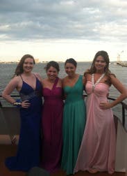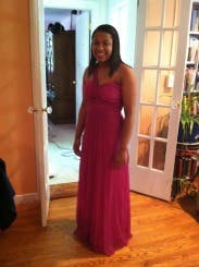 I was very happy to find a long dress that fit my petite frame. Although it was a little short for really tall heels, it worked out well for walking and dancing. With the side boning and sewn in bust I was able to go bra-less, a definite plus. The dress felt bright and cheery, but elegant. Very happy with my choice.
