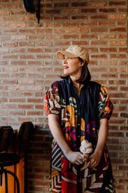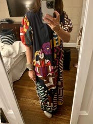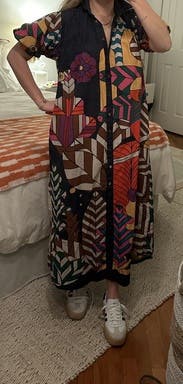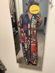 Got lots of compliments on this funky dress. Someone called me Li Saumet from "Bomba Estereo" in it and I was sold. It's definitely oversized, but looks really cute with a belt on it. Can be dressed up or down. I wore it to a rehearsal dinner at a destination wedding, and it was just right.