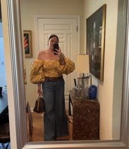 Many compliments. Loved the color and big sleeves. Fit perfectly. Hit just right and didn’t show stomach when wearing high waisted jeans. Will rent again!