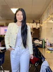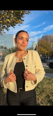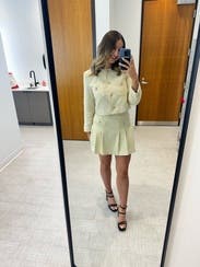 Love this butter yellow jacket with the matching skirt. IG @bethielife