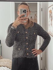 Casual sweater. Easy to wear with great gold buttons and a little sparkle.
