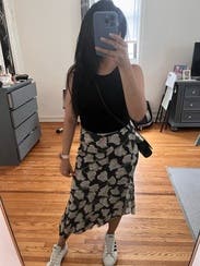 Wore this with a body suit, the slit is decently high, the skirt flows really nicely