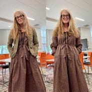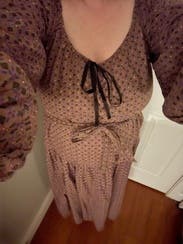Beautiful fall print but the tie waist and then the silk black tie at the top was too much. Wouldn’t rent again