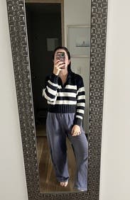Love, love, love this striped sweater! I’ve rented this several times and the xs fits perfectly cropped on me but still oversized and cozy.