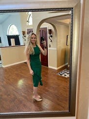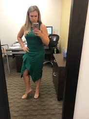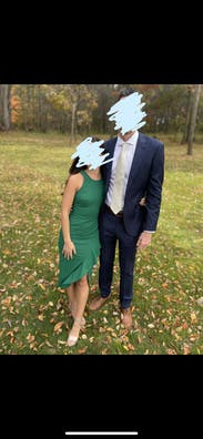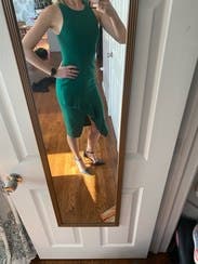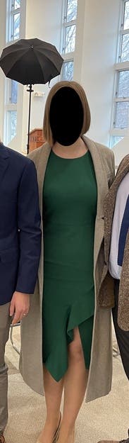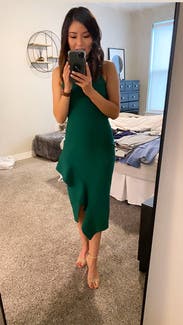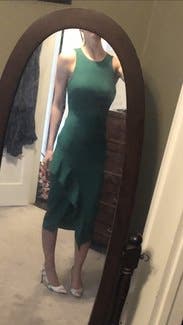 This green dress is beautifully constructed. The fit is true to size and very flattering.
