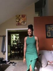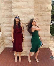 I'm going to echo a lot of the other reviews and reinforce that this dress definitely runs small so going up a size is the way to go! With that, I felt like the material was thick and flattering, and the color is amazing! I feel like it would look good on anyone.