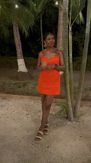 Wore this for a Mexican resort vacation and it was stunning! The dress felt revealing but I could get away with it at the resort. The color is gorgeous and I’d recommend it for a fun tropical trip.