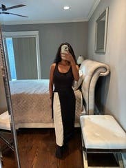 Second time renting this skirt cause I love it sm! Perfect for a date night in the winter and style them with my black knee high boots