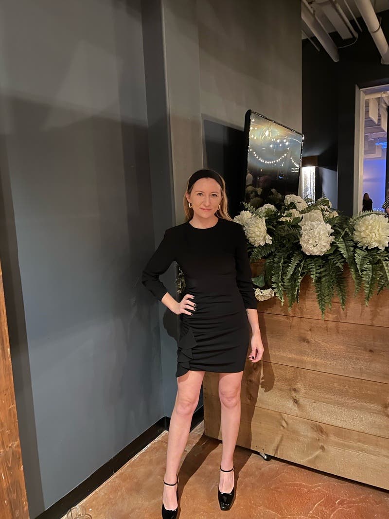 Sleek, slimming, and oh-so sexy, this Cinq à Sept mini is styled with a gathered side and three-quarter length sleeves.