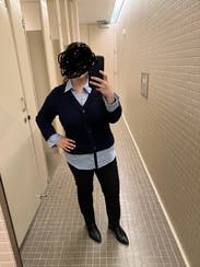 Paired it with a grey skirt, stockings, black leather boots for work and got so many compliments!