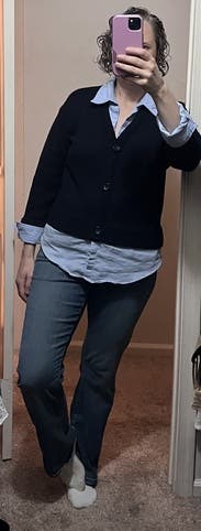 This looked so freaking good, I almost shed a tear sending it back. Super comfy for how elevated it looks. Wore with jeans and loafers. Fave look for a casual day.