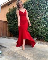 My bf was excited for me to get a red dress to match the theme of the Gala we were attending and this was the perfect one for the occasion - Classy, elegant, and comfortable! I'm 5'6 and 129lbs, the size 2R fit perfectly.