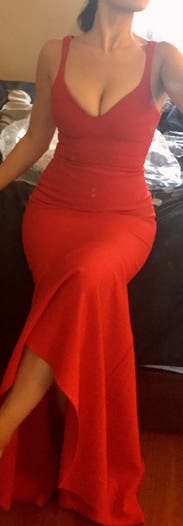 I absolutely loved this dress. I got so many compliments. The fit is amazing. Such a stunning flattering dress. Great thick material too. It is a little revealing in the chest area though. One of my favorite dresses ever worn.