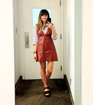 The overall fit of this dress was pretty true to size. It's a little bit on the shorter side, but I felt comfortable with the length with some tights underneath. I rented this just as a "for fun" rental slot, but I ended up wearing it a few times. I got a load of compliments on it every time I wore it. I felt like a bookish baddie in this easy outfit. I would absolutely rent it again.
