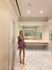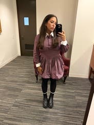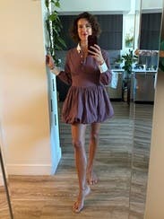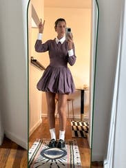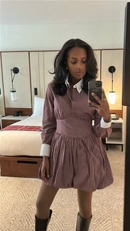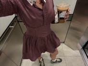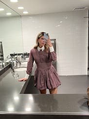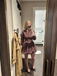 I really love this brand and always check to see what’s new. Even though this particular style wasn’t one I’d normally be drawn to, I decided to rent it because that’s half the fun of Rent the Runway: trying pieces you wouldn’t usually buy but that still flatter you. The cut is what sold me. I know this brand’s tailoring works well with my build, so I felt comfortable being a little more adventurous. At first, the collar with all the buttons felt a bit too stiff and structured, but I unbuttoned the collar and a couple of the top buttons, which made it more relaxed. I usually don’t like bubble hems, but this one was different…it puffed out enough that it almost gave that twirling-skirt look, even while standing still. For reference, I’m 5’6” and didn’t find it too short. I even wore it to church, and it felt appropriate. The fabric is cotton, so it leans casual more than dressy. That said, I think it would be too short for an office setting unless you wore tights. Sizing-wise, I was nervous it would be too small when I first saw it, but the hidden side zipper and snap closure made it easy to get on. My advice: if your exact size isn’t available, don’t size down, size up instead. I am small chested and it was fitted up top for me still.