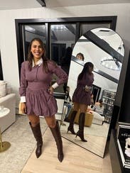 So chic and so cute! Definitely suggest having a steamer ready. You can see I missed a spot on the skirt steaming and this dress definitely holds wrinkles. Holding onto this one for thanksgiving