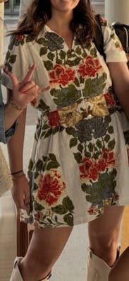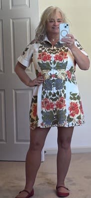 What a fantastic and surprising find! This dress was a perfect solution for both me and my daughter, who happen to be the same size. She wore it to start her senior year as a chic, preppy back-to-school dress, and I was able to style it as a smart work dress with the added bonus of pockets! The floral pattern is stunning but not too loud, and the colors are really eye-catching. It truly is a versatile piece that worked beautifully for both a 21-year-old and a 50-year-old. I would absolutely recommend trying this dress.