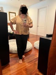 This top was lined which was nice with the cutouts. Very structured and leaned toward the “professional” side but I wore it casually. Wasn’t crazy about the color.