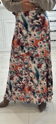 I loved colors of this skirt so much plus its soft & silky but it was so tight in the waist. A medium size likely would have been too long in length bc it was almost to the floor with the waistline sitting above the belly. Will be gorgeous on any taller & tiny waisted person.