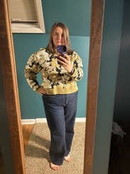 Liked this more than I expected. At first, I thought it was too big but it somehow fell into a flattering shape. Felt really cozy in it and loved the floral design.