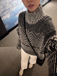 A really fun and unique sweater, great for winter. A little more cropped than I was expecting, but good with high waisted pants.
