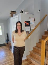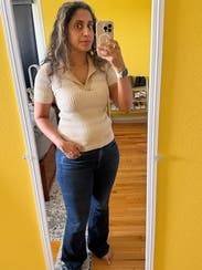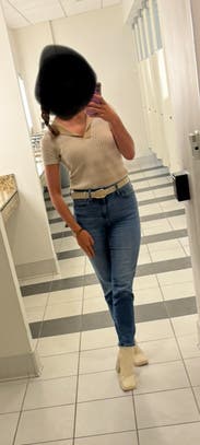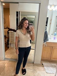 When I pulled this out of the bag I thought it would be too small but it's stretchy. I loved this top so much I almost bought it! Wore to work and outside of work.