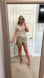 Cute under a jacket as a layering piece. It's ribbed and stretchy but gives a fitted look. I liked it enough and would rent again for work but nothing particularly special about this top. It fit TTS I'd say