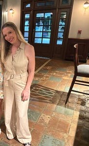 Easy and cute for work, you need a racer back bra which is a bit annoying / uncomfortable but love a jumpsuit for the office. The belt is also a bit big in the waist (not enough holes) so it was a little crooked on me