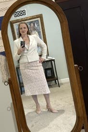 Fit and looked great. Worn with RTR’s Ralph Lauren Plaid Trousers and neutral 2” heels.