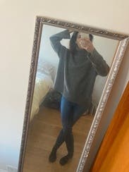 Loved this cozy sweater. Slightly oversized slouchy fit. It's a great wardrobe staple. I totally loved wearing it.