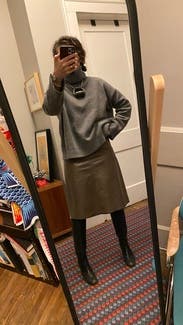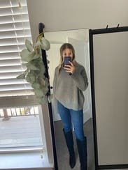 Needed a good warm staple for a trip to Montana and this didn’t disappoint. Wore with jeans, with leggings, and a skirt. Can’t go wrong with a a warm everyday grey sweater