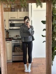 This was the very first RTR item I rented and I have probably worn it 5 or 6 times. It goes with everything and is super cozy. My only gripes is that it really retains heat so it can get warm when paired with a coat & the sleeves are REALLY long on me. Thankfully it had big cuffs at the wrist which I can flip up once and that looks ok. Pants are RTR too.